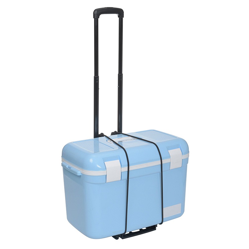 簡単に収納できるコンパクトな力持ち。段ボールやクーラーボックス、アルミケースなど重量物を楽々に運べるキャリーカートです。ゴムロープ一体型なので、煩わしい固定作業も簡単です。耐荷重は(約)35kg。