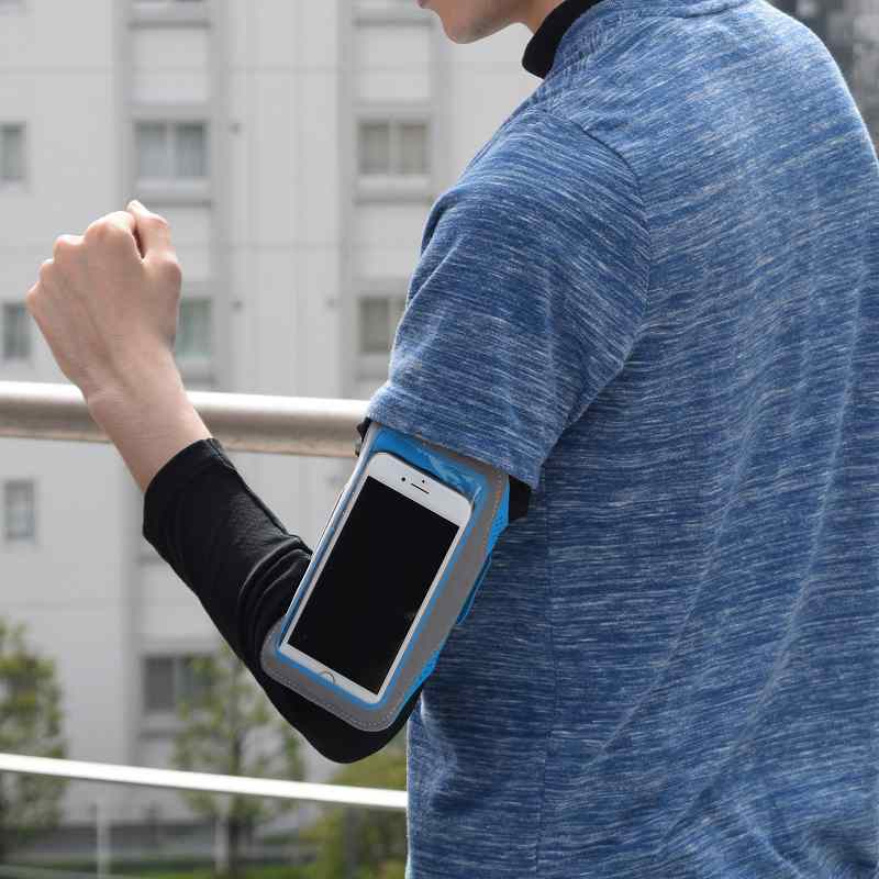 ランニングやウォーキングに便利なアームバンド。防汗・撥水設計。約5.8インチまでのスマホ・オーディオプレーヤーに対応。スマートフォンをケースに入れたままでもタッチ操作可能。心地良い装着感でクッション性のある素材とマジックテープで腕にフィット。男女兼用。イヤホンホール付き。