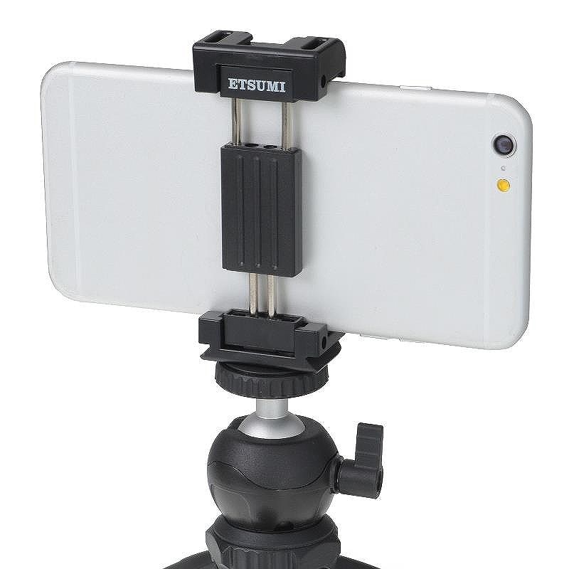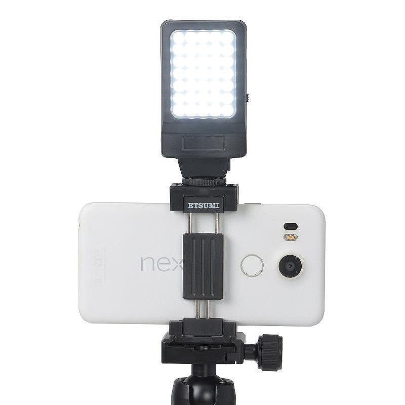 集合写真や簡単な商品写真(物撮り)でのスマホ固定にぴったり。ほとんどのスマホを挟める58-88mmの固定幅で、薄型のケースを付けたまま挟める最大12mm厚まで対応。上部のアクセサリーシューにはLEDライトなどアクセサリーを。ベース部の三脚ネジ穴で、お手持ちの三脚に取付できます。カメラユーザーの方にもスマホでメモ代わりの記録やSNS用の撮影に活用いただけます。 ※LEDライト、三脚等は別売りです