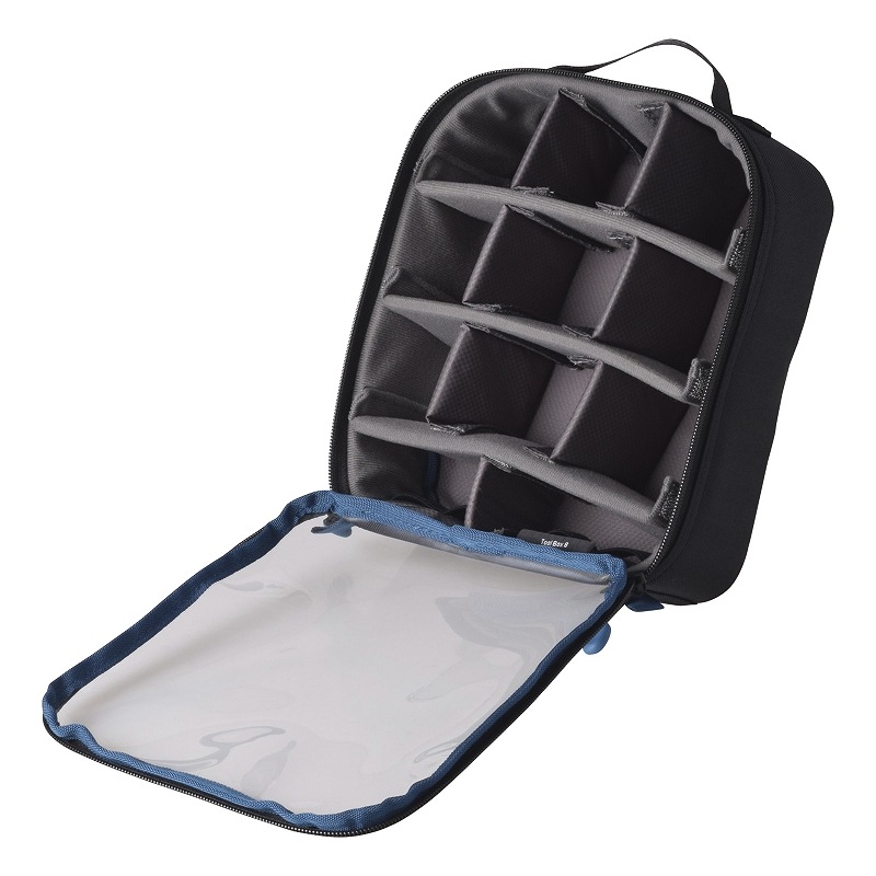 現場のニーズに応えるTENBA「TOOLS」シリーズ。プロの写真家や映像作家に向けた効率の良い機材の整理と保護、そして快適な移動の為のソリューション。 メインフラップが透明窓になっているので、中身を判別しやすくなっています。また、ミラーレス機やGoPro等アクションカムのシステム一式を多数の中仕切により小分けしながら収納できるので、バッグインバッグに最適です。