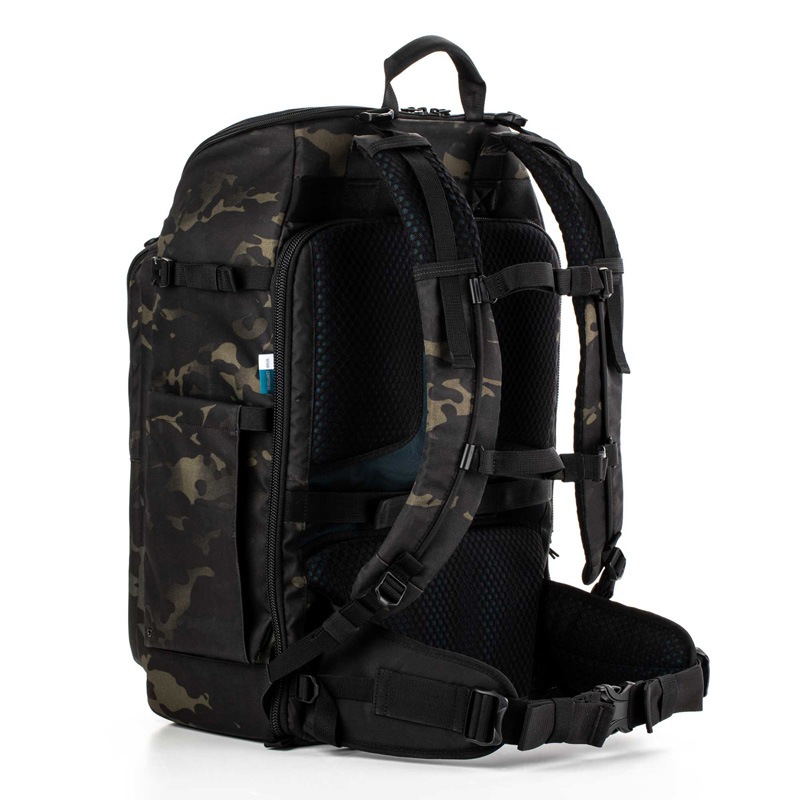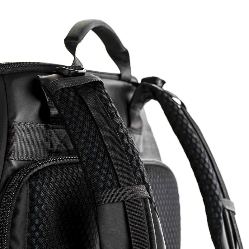 アクシスV2シリーズはどのような撮影スタイルにも適合できる3点カメラアクセスシステム(トップとサイド、背面の3ヶ所)を採用。リュックベルトのハーネスは根元から高さ調節可能で、あらゆる体型に合わせてカスタマイズできる上下2本採用。デザインを印象付ける前面のMOLLE(主に西側諸国の軍隊が採用する、バックパックやタクティカルベルトなどのプラットフォームにポーチ等を固定する規格の通称)ウェビングは、ミリタリー用のポーチやアクセサリーを装着することで、更なる機能性を追加します。防水として本体はコーティングされた撥水生地の外装と別にレインカバーが付属。YKKジッパーとクリップ、大幅に強化された縫製がなされ、素材の選定や製造にも妥協はありません。TENBA Axis V2は、その名の通り、フィールドワークにおける軸(Axis)として、フォトグラファーを支え続けます。