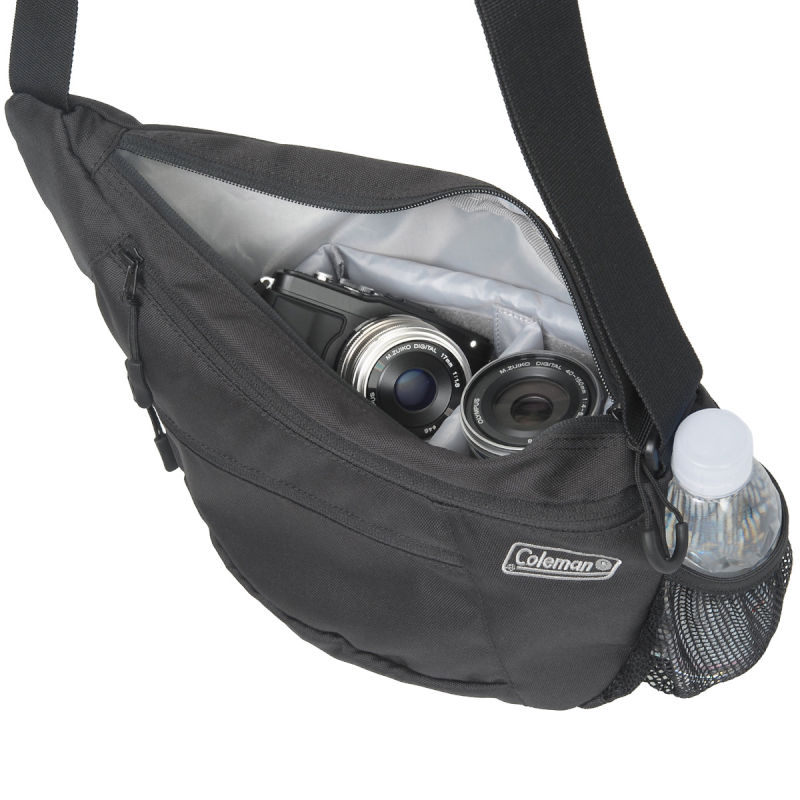 伝統のアウトドアブランド・コールマンの名を冠したワンショルダータイプの超軽量カメラバッグ。クッションボックスを外せば、普段使いのバッグとしてもそのまま使え、サイドのジッパーにより収納スペースの拡張も。