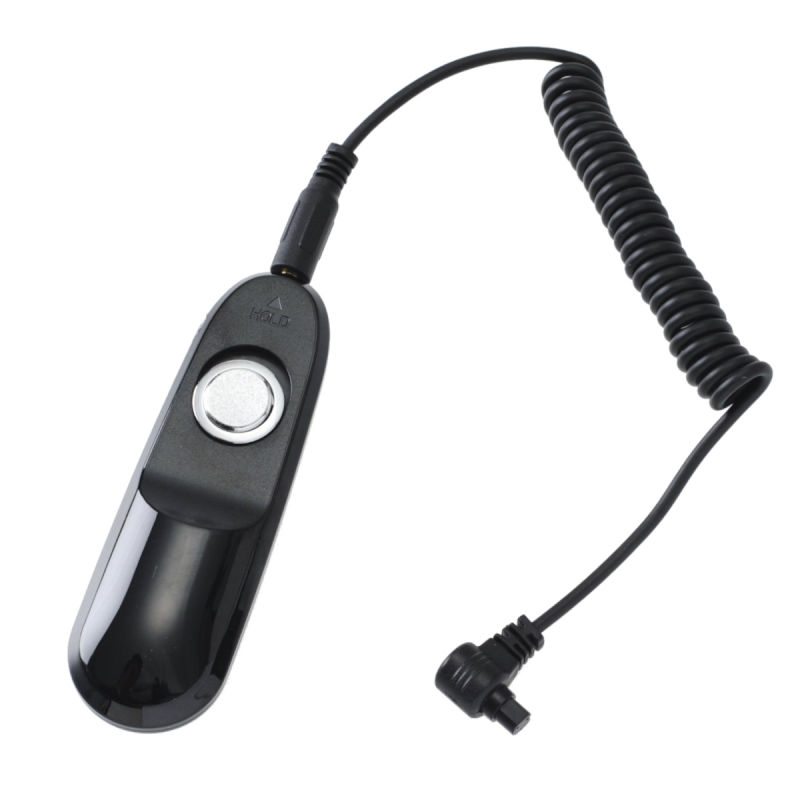 三脚使用時の必需品。電子リモートスイッチをリニューアル。外装は衝撃に強いポリカーボネート製で、表面はピアノブラックの仕上げ。測光・AF時に使用するレリーズ半押し、長時間露光用のレリーズロックなどの基本的な機能を備えます。