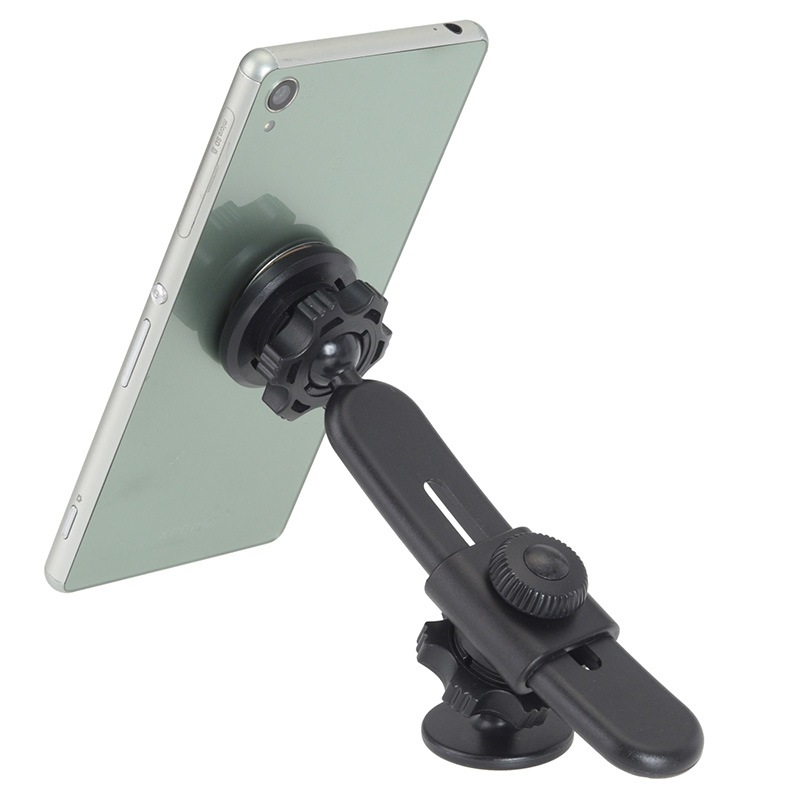 マグネットで着脱簡単。車載にも便利なスマートフォンホルダー。スマホ裏面に貼り付けた付属の取付用プレートを介してマグネットでスマホをホールド。本体のボールジョイントとスライドアームで、スマホの向きや角度は調整自在。ホルダー本体は付属の両面テープで設置します。オフィスやキッチンなど、あらゆるシーンで活躍します。