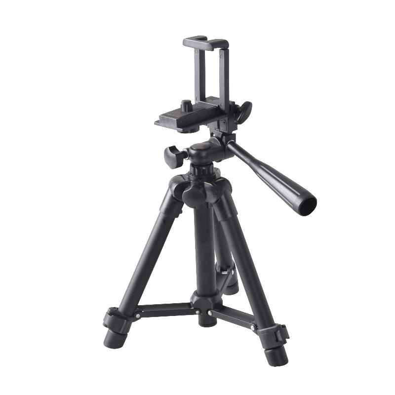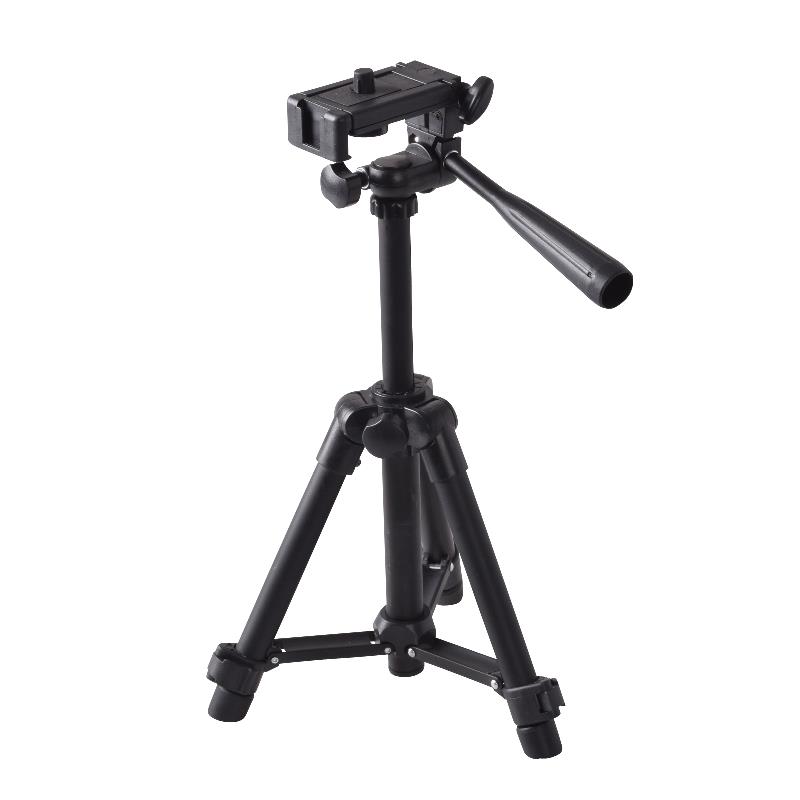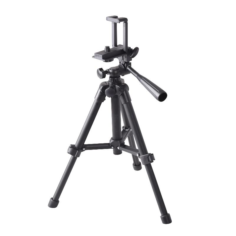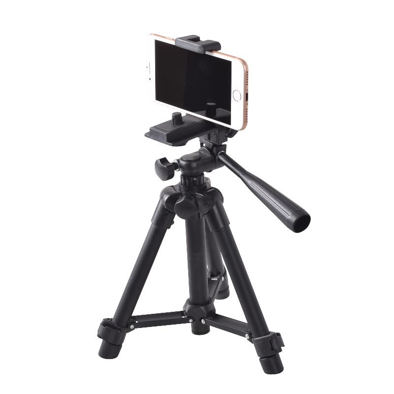 持ち運びにも便利な卓上小型三脚。「SNS動画撮影」「YouTube」「テレワーク」等に便利なスマートフォン・カメラ両用スタンド。付属のネジ付シューでリングライトやマイクの同時セッティングも可能。