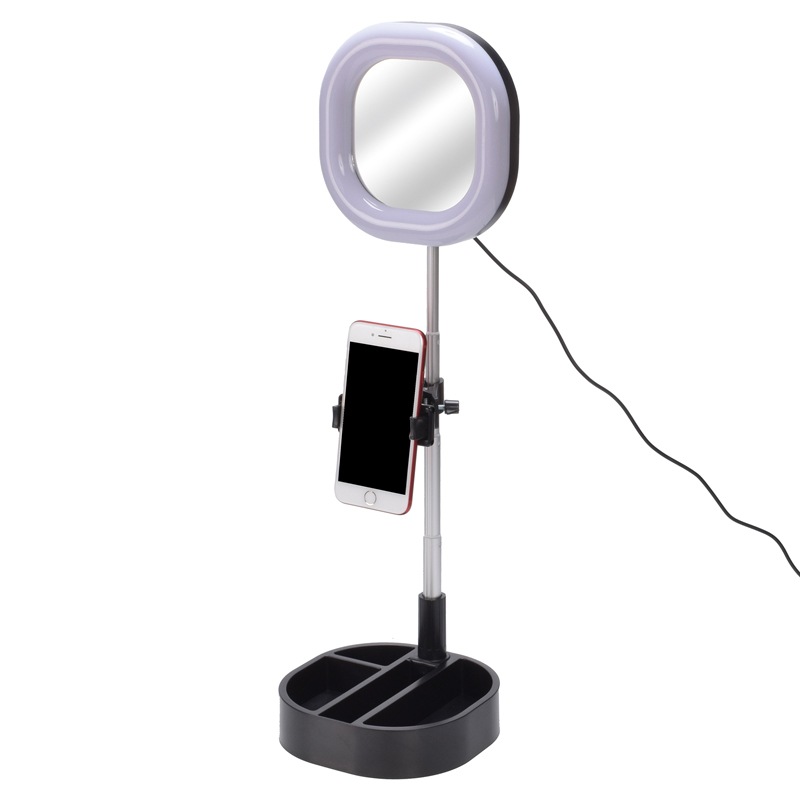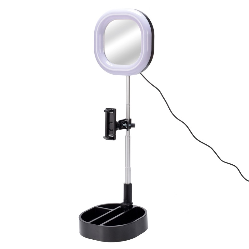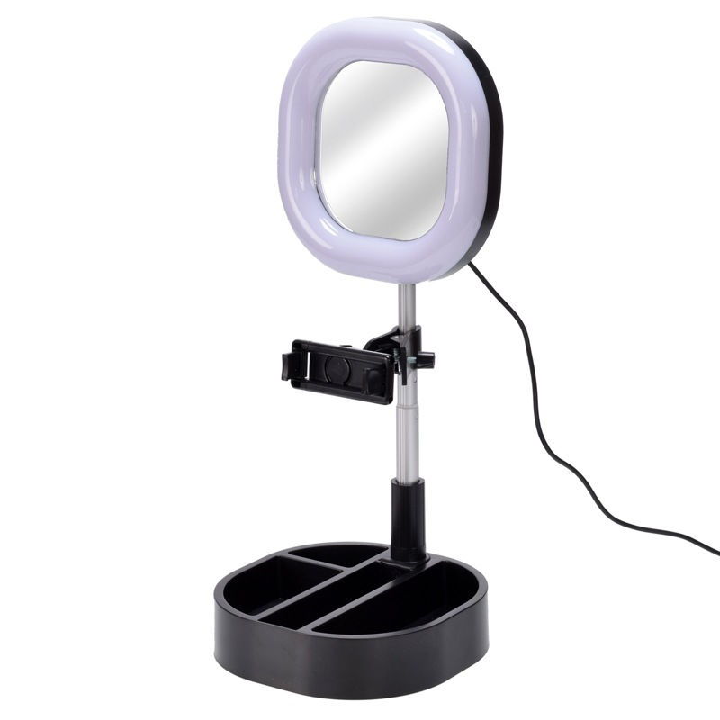 折りたたんでコンパクトになるので、収納にも持ち運びにも便利。自撮り、SNS動画配信、卓上ライト、メイクアップなど、様々なシーンに合わせて使えます。三脚不要のリングライト&ミラー&スマホスタンドの3in1。