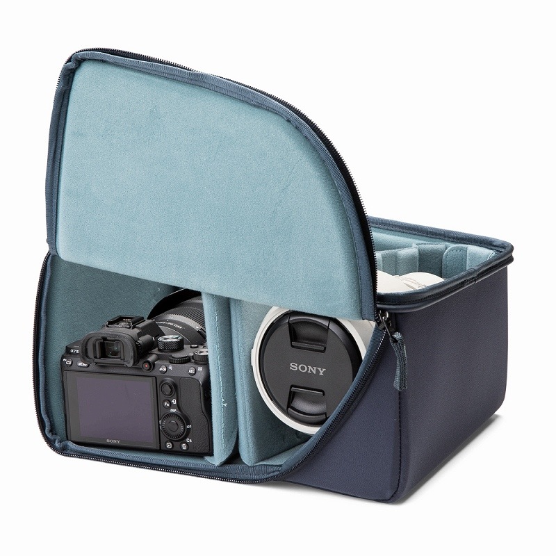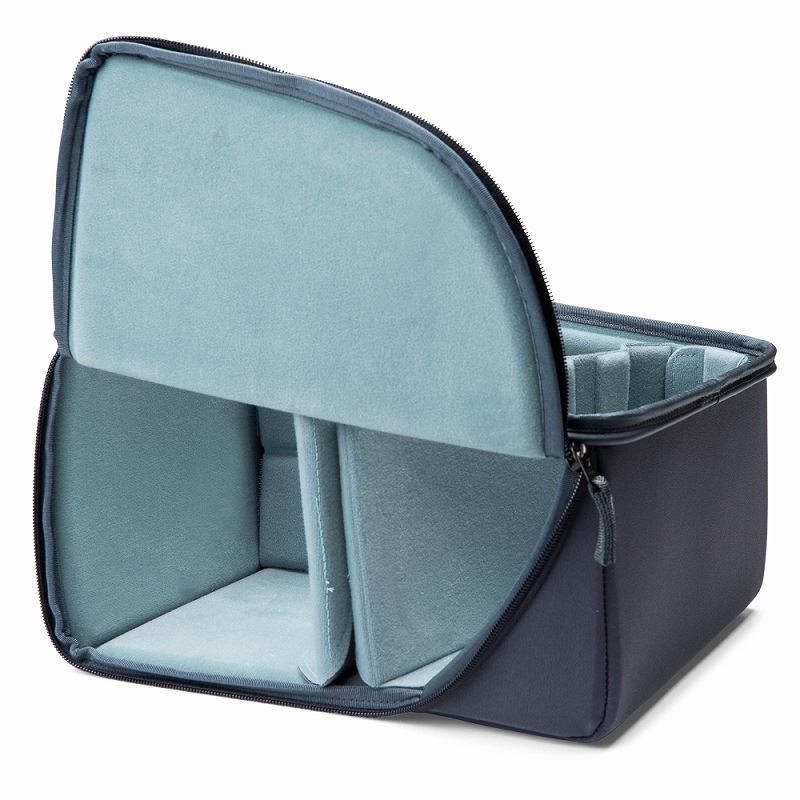 ミディアムDSLRコアユニットV2は、アクションX50、アクションX70に使用できるインナーボックスです。強度の確保と収納物の保護のため、EVAモールド材が用いられており、専用の中仕切とshimodaバッグの中で使用しない際の防塵に使えるカバースキンが付属しています。このカバーは完全に構成されたshimodaバッグで機材以外の物を収納したい場合、追加の梱包ユニットとしても使用できます。