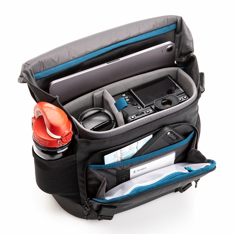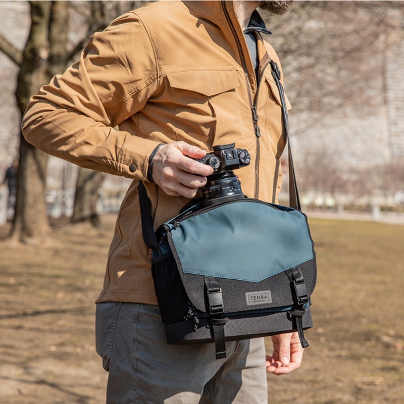 DNA 9スリムメッセンジャーバッグは、ミラーレス、レンジファインダー、または2〜3個のレンズとフラッシュとアクセサリーを備えたコンパクトDSLRカメラに加え、最大10インチ(25 cm)のタブレットに適合します。取り外し可能なカメラインサート、クイックアクセストップジッパー、防水仕様の底面を使用しています。