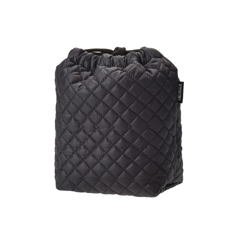 機材の大きさにかかわらず収納できるフレキシブルタイプ。カメラやレンズなどの機材をこのポーチで包めば、バッグの中仕切りが無くても機材同士が直接触れることなく収納でき、バッグのスペースをフルに生かせます。また、このポーチはキルティング加工されているので擦れてもキズが付く心配はありません。