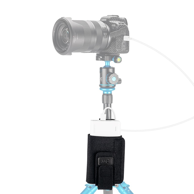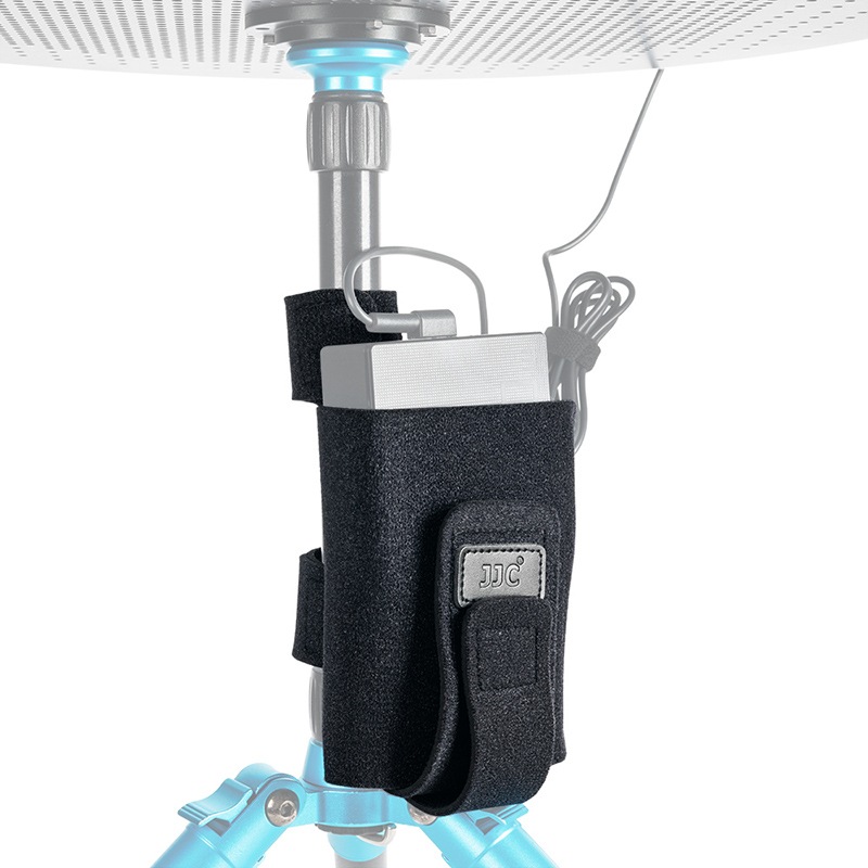 三脚やライトスタンドに取り付けて、モバイルバッテリーやカメラリモコン、スマートフォン、外付けハードドラブなどを収納できるポケットです。撮影時に必要な物が手元にあると便利です。