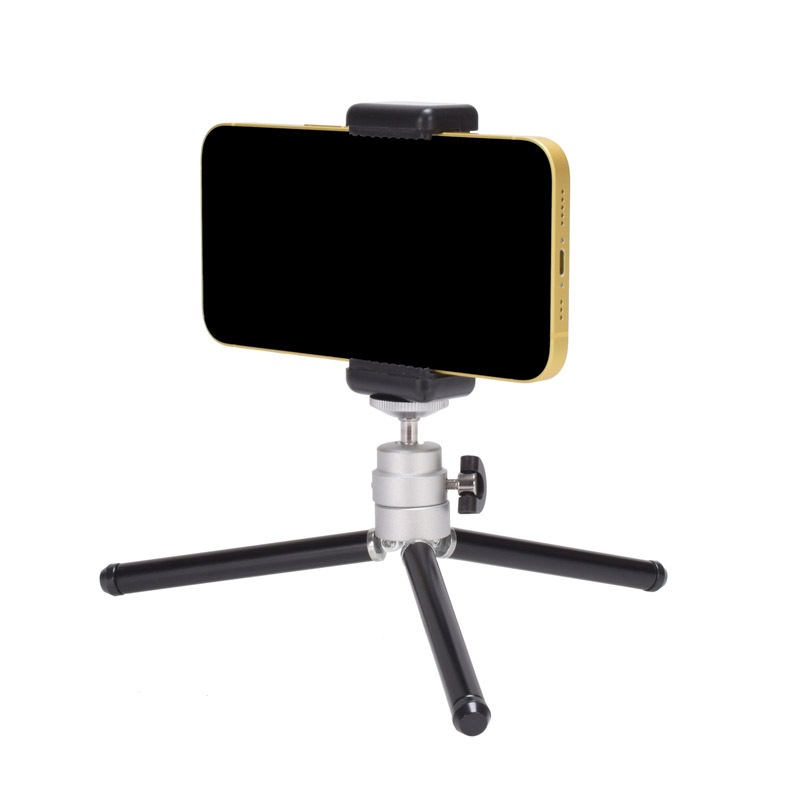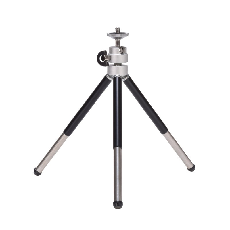 ポケットサイズで持ち運びに最適な卓上ミニ三脚「テトラ」。収納サイズは150mmとコンパクトながら、脚を伸ばした最大全高200mmから脚を広げたローアングル80mmまで幅広く活躍。