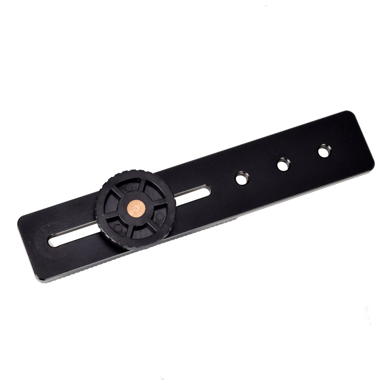 主な仕様 本体サイズ:長さ160×幅30mm 製品重量:約70g 原産国:中国 三脚取付ネジとカメラネジの位置は30mm~130mmまでの範囲で調整可能