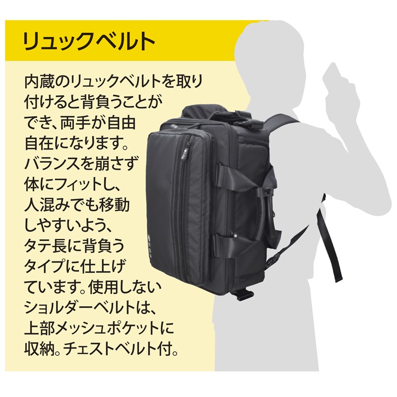 著名なカメラマンが名を連ねる芸術写真家集団「f.64グループ」。その名を冠したプロ用3WAYトランクバッグ。手提げ/ショルダー/リュックの3WAY。リュックベルト未使用時は収納可能。大きく開くメイン収納には、レンズや細かいアクセサリーが効率的に入ります。