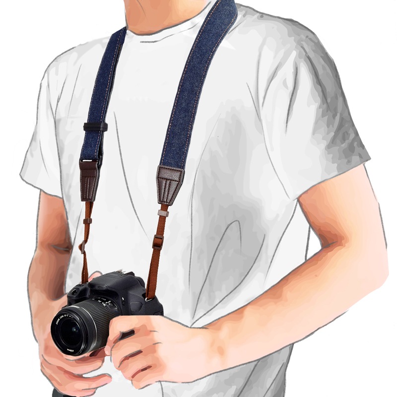 ミラーレス/一眼レフ向けのストラップ。アジャスター付で長さの調整が可能。可変式ロングタイプで斜めがけも楽々