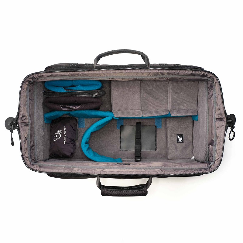 Cineluxe v2 バックパック24は、ARRI、Sony、Canon、RED、Blackmagic などプロ用カムコーダー、シネマカメラ、ENGリグに適合します。内部の高さ (12 インチ/30 cm) と長さ (21 インチ/53 cm) により、ベースプレート、マットボックス、モニター、マイク、バッテリーを取り付けた状態でカメラリグを収納でき、すぐに撮影ができます。素早くアクセスできる「ドクターバッグ」スタイルの開口部を備えた初めてのビデオカメラバックパックです。バッグには、パッド入りラップ 2 枚とパッド入りジッパー付きポーチ、保護レンズピロー、カメラセキュリティストラップが付属しています。バックパック24は、荷物を満載した状態でも快適に持ち運べるように、通気性のある Airflowバックパネルと、様々な肩や体型に合わせて調整される Pivot-Fit ハーネスストラップを備えています。