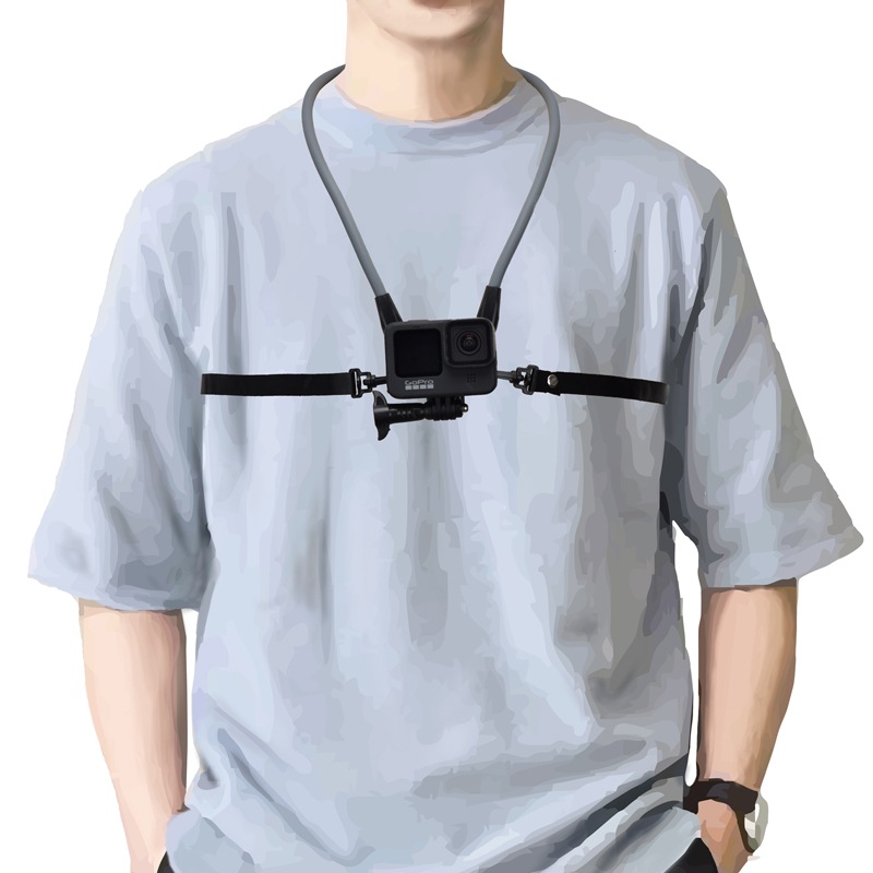 ハンズフリー撮影が可能なネックレスタイプのアクションカメラ対応ホルダー。両手が自由に使えるため、自分の視点から臨場感ある映像を撮影できます。安定性を高めるための取り外し可能なチェストストラップ付き。