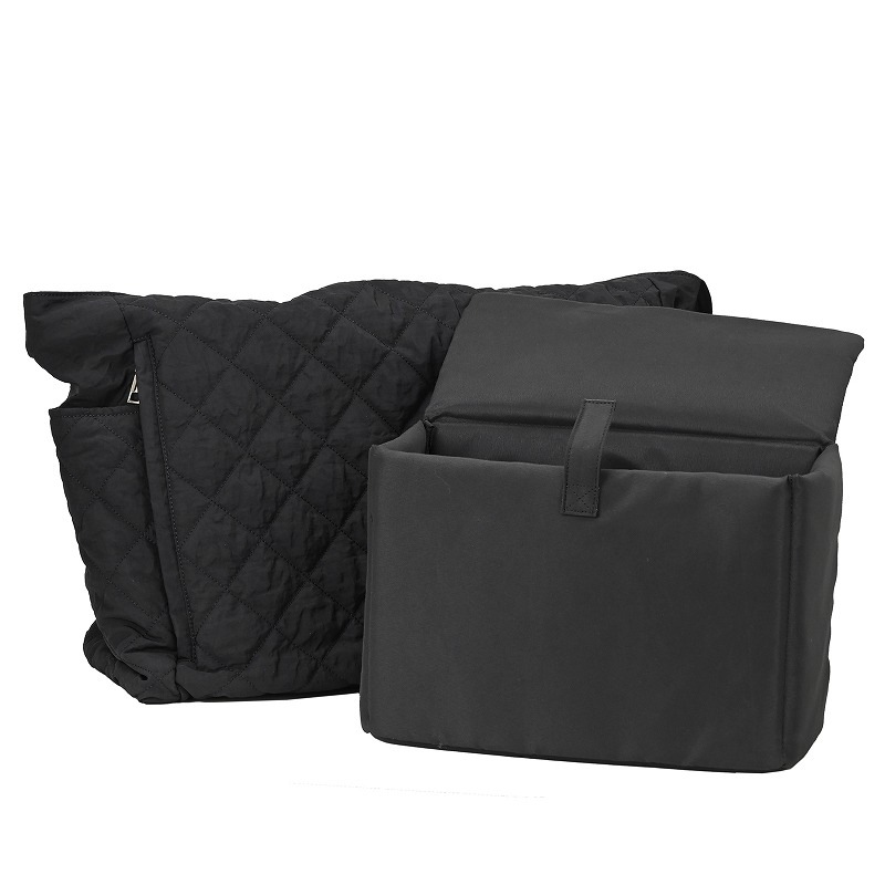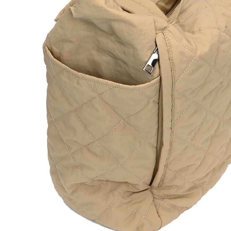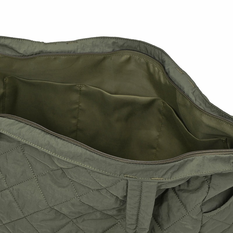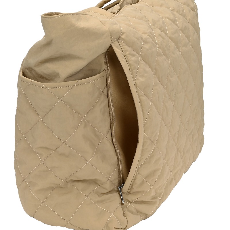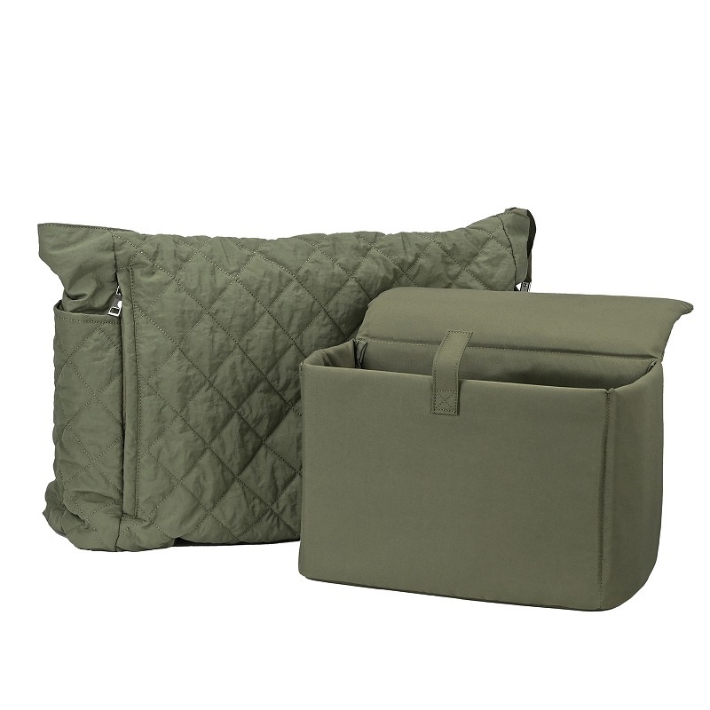 ナチュラルな雰囲気のキルティングトートバッグ。取り外し可能なカメラインナー付きで一眼レフカメラやミラーレス、レンズなどの機材を衝撃から守るクッション入りインナーボックスが付属。ボックスの中仕切りは取り外し可能で、収納する機材に合わせてカスタマイズできます。フタ部分にもクッション材を使用しているため、上に荷物を重ねても中の機材に影響はありません。軽量な生地を使用した、ソフトな手触りのトートバッグです。大きく開く開口部はファスナーで開閉可能。A4ファイルや上着などもサッと収納。通勤・通学・旅行などの普段使いはもちろん、イベントやお出かけにもぴったり。エコバッグやマザーズバッグとしても活躍します。