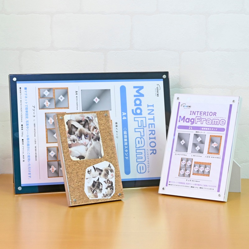 主な仕様 本体サイズ:128×179mm(最大2Lサイズ) 製品重量(約):270g 材質:アクリル、MDF、他 用途:縦置き横置き兼用 原産国:中国