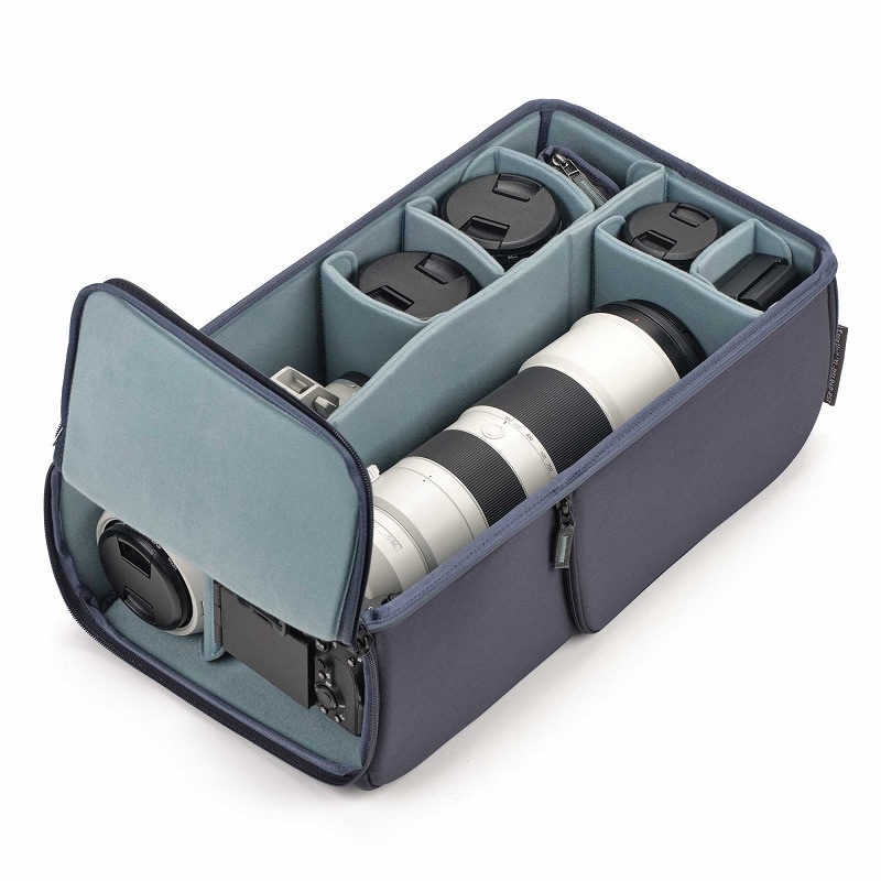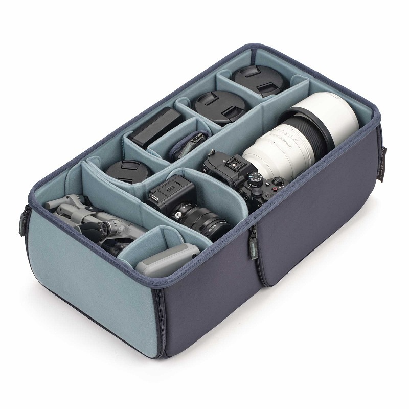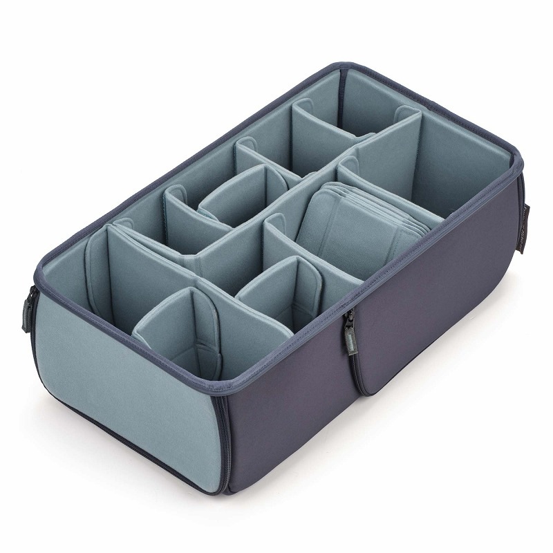 耐衝撃に優れたEVAシェルと仕切を使用したカメラ用インナーボックス。壁と仕切りはEVA製で、多くのカメラバッグに使用されているソフトクッションよりも薄型で優れた保護性能を発揮します。RSTシリーズはそれぞれShimoda ActionXv2 X30,X40,X50に対応。従来のリア、サイドアクセス(RS)に加えて、トップアクセス(T)が可能になりました。これによりバックパックの上から下まで機材の収納スペースを最大限に活用できるように設計されています。
